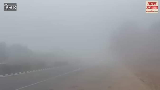 VIDEO : हिसार-फतेहाबाद के बीच घना कोहरा, यातायात प्रभावित