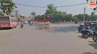 VIDEO : हिसार में पराली जलाने पर दर्ज मुकदमे वापस करने के लिए किसानों ने किया प्रदर्शन