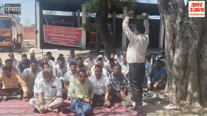 हिसार: दमकल कर्मियों ने अपनी मांगों को लेकर की नारेबाजी
