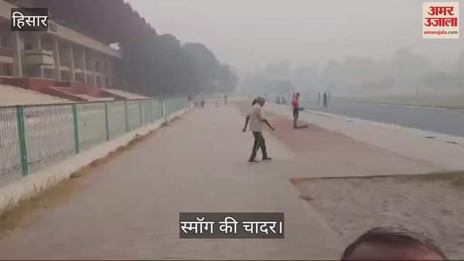 VIDEO : हिसार में स्मॉग की चादर सुबह-शाम सैर करने वालों पर पड़ रही भारी