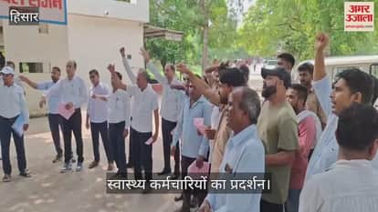 हिसार: जिओ फेंसिंग हाजिरी प्रणाली के विरोध में भड़के स्वास्थ्य कर्मचारी, किया प्रदर्शन