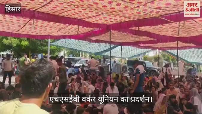 हिसार: ऑनलाइन ट्रांसफर नीति के विरोध में एचएसईबी वर्कर यूनियन का प्रदर्शन