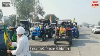 VIDEO : किसानों ने रामायण टोल से हांसी तक निकाला ट्रैक्टर मार्च
