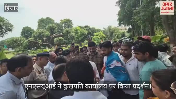 हिसार: एनएसयूआई ने कुलपति कार्यालय पर किया प्रदर्शन