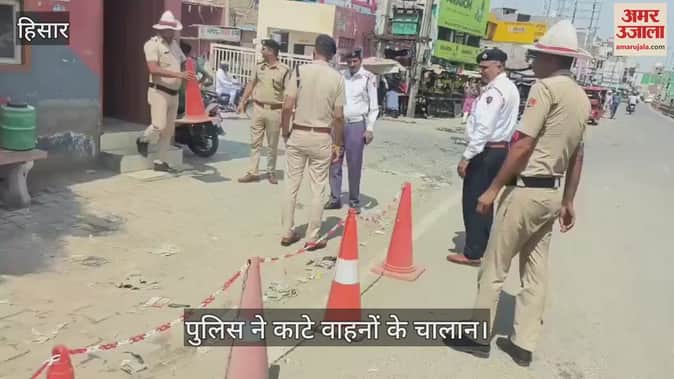 हिसार: यातायात पुलिस ने बस स्टैंड के बाहर नो पार्किंग जोन में खड़े नौ वाहनों के काटे चालान