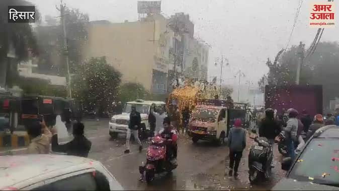 प्रो. कबड्डी लगी में स्वर्णिम जीत के बाद हिसार पहुंची हरियाणा स्टीलर्स टीम का शनिवार को विजय जुलूस निकाला गया। जिंदल ओवरब्रिज से शुरू हुआ जुलूस एचएयू के गिरी सेंटर तक चला। इस दौरान बारिश के बीच शहरवासियों ने जगह-जगह खिलाड़ियों का स्वागत किया। खिलाड़ियों के साथ विधायक सावित्री जिंदल मौजूद रहीं।