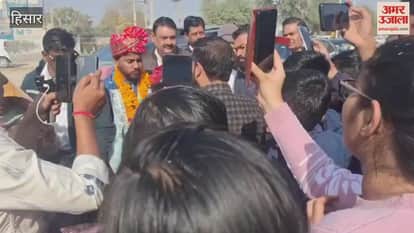 हिसार में रजत पदक विजेता सोनाक्षी का गांव पहुंचने पर स्वागत किया