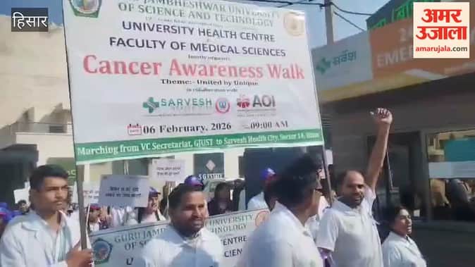 हिसार में कैंसर जागरूकता को लेकर जीजेयू के विद्यार्थियों ने निकाला मार्च