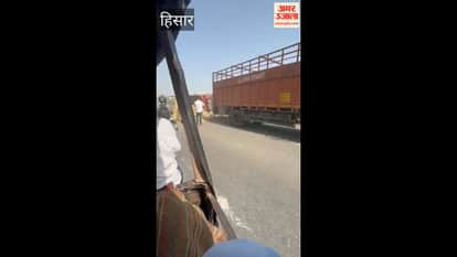 हिसार एयरपोर्ट चौक के पास पलटा ट्रक लगा, वाहनों की लंबी लाइन लगी