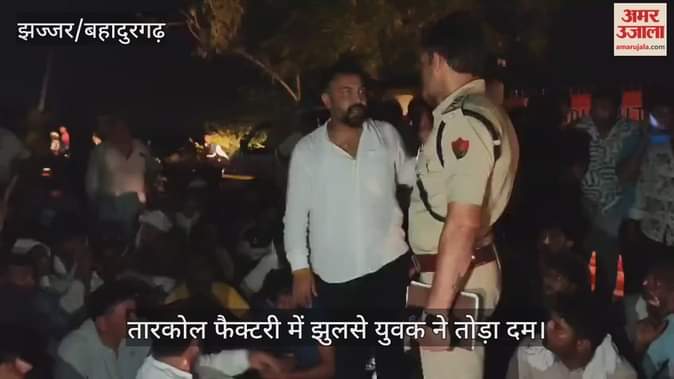 झज्जर: तारकोल फैक्टरी में झुलसे युवक ने तोड़ा दम, परिजनों ने शव को एंबुलेंस में रखकर फैक्टरी के बाहर लगाया जाम
