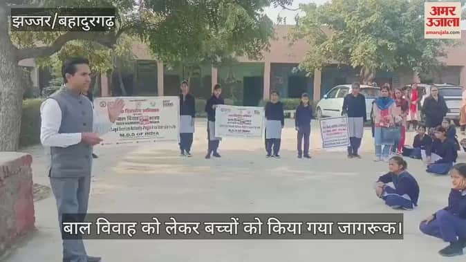 जिला विधिक सेवा प्राधिकरण झज्जर, महिला एवं बाल विकास विभाग, संरक्षण एवं बाल विवाह निषेध अधिकारी, शिक्षा विभाग, एमडीडी आफ इंडिया संस्था के संयुक्त तत्वावधान में राजकीय वरिष्ठ माध्यमिक विद्यालय अच्छेज पहाड़ीपुर की प्रवक्ता पूनम ने कहा कि जिस भी लड़का या लड़की का बाल विवाह होता है, उनमें इतनी समझ नहीं होती कि वह घर गृहस्थी चला सके। इस कारण परिवार में तनाव बना रहता है और फिर वह तनाव आगे चलकर घरेलू हिंसा का रूप ले लेता है। राजकीय माध्यमिक विद्यालय बाकरा से अध्यापक राजेश ने कहा कि शिक्षित व्यक्ति ही देश के निर्माण में महत्वपूर्ण भूमिका निभा सकता है, इसलिए शिक्षित होना सभी के लिए जरूरी है। उन्होंने कहा कि बाल विवाह बच्चों से उनके शिक्षित होने के अधिकार को छिन लेता है, जिससे आगे चलकर उसको काफी सारी चुनौतियों को सामना करना पड़ता है, इसलिए बाल विवाह रोकथाम जरूरी है। इस अवसर पर विपिन, मनोज कुमार, संदीप जांगड़ा, मनीषा, राजेश, पवन मौजूद रहे।