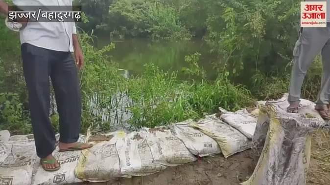 झज्जर के सिलानी गांव के पास ड्रेन-8 हुई ओवरफ्लो, टूटने का बढ़ा खतरा, बांध लगाने का काम शुरू