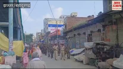 VIDEO : झज्जर में एसीपी के नेतृत्व में बेरी क्षेत्र में पैरामिलिट्री व स्थानीय पुलिस ने निकाला फ्लैग मार्च