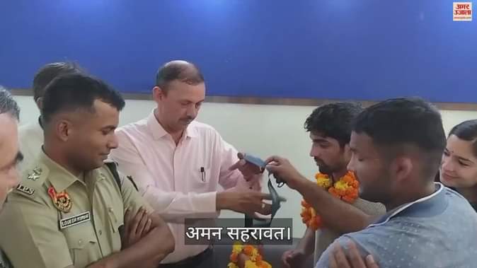 ओलंपिक में कांस्य पदक विजेता अमन सहरावत का मंगलवार को झज्जर पहुंचने पर जोरदार स्वागत किया गया। अमन सुबह छत्रसाल स्टेडियम से रवाना होकर बहादुरगढ़, नया गांव और नेहरू कॉलेज झज्जर पहुंचे, जहां डीसी शक्ति सिंह, डीसीपी लोगेश कुमार और एडीसी सलोनी शर्मा ने उनका अभिनंदन किया। कॉलेज प्रशासन ने उन्हें दूध पिलाकर बधाई दी।