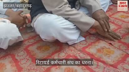 झज्जर में रिटायर्ड कर्मचारी संघ के सदस्यों ने अपनी मांगों को लेकर दिया धरना