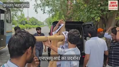झज्जर: एचएयू के आंदोलनरत छात्रों के समर्थन में एनएसयूआई ने फूंका पुतला