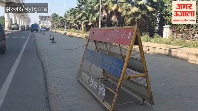 बहादुरगढ़ के दिल्ली रोहतक रोड पर अवैध पार्किंग रोकने के लिए पुलिस ने की बेरिकेडिंग
