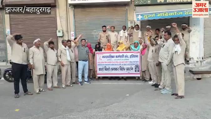 बहादुरगढ़: सफाई कर्मचारियों ने काले बिल्ले लगाकर किया विरोध प्रदर्शन