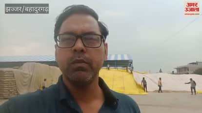 झज्जर में मौसम शराब हैं और सुबह से बादलवाही छाई हैं। अब कुछ देर से हल्की बूंदाबांदी भी जारी हैं। मंडी में हजारों क्विंटल गेंहू खुले में पड़ा हैं। तेज बारिश आती हैं तो गेंहू भीग जाएगा। मंडी में मजदूर गेंहू को बचाने के लिए तिरपाल से ढक रहे हैं।