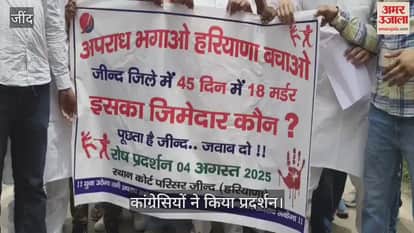 जींद: अपराध भगाओ हरियाणा बचाओ को लेकर कांग्रेसियों ने किया प्रदर्शन