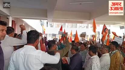 जींद: भारतीय मजदूर संघ के सदस्यों ने अपनी मांगों को लेकर किया प्रदर्शन