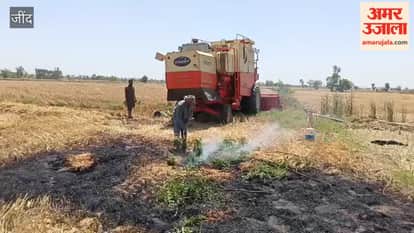 जींद के जुलाना में कंबाइन से उठी चिंगारी, गेहूं की फसल में लगी आग, ग्रामीणों की सूझबूझ से टला बड़ा हादसा