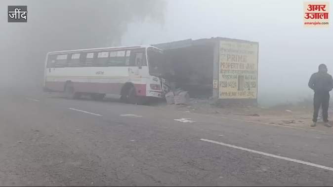 VIDEO : जींद में परिवहन समिति बस क्यू शेल्टर में घुसी, सात यात्री घायल