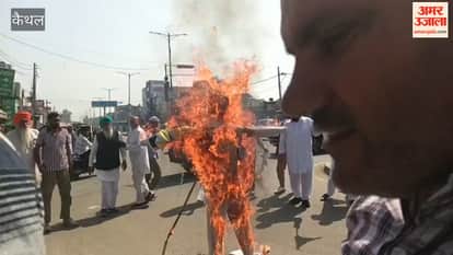 In Kaithal, effigies of the Prime Minister and the US President were burnt in protest against the trade deal; farmers reached Chhotu Ram Chowk shouting slogans.