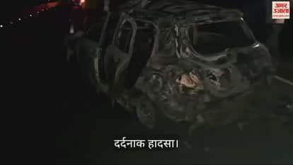VIDEO : कुरुक्षेत्र में ट्रक से टकराने के बाद कार में लगी आग, तीन जिंदा जले