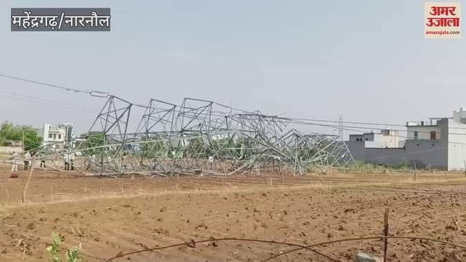नारनौल में 132 केवी लाइन का पोल गिरा, आंधी के साथ बारिश बनी आफत