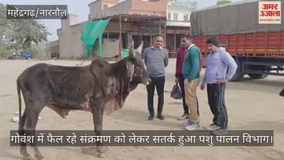 नारनौल में गोवंश में फैल रहे संक्रमण को लेकर सतर्क हुआ पशु पालन विभाग