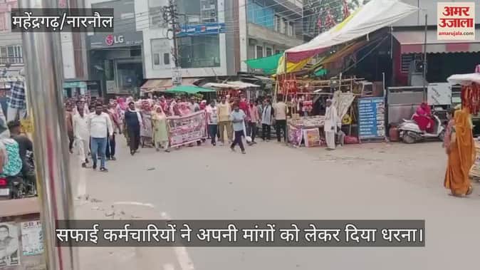 महेंद्रगढ़: सफाई कर्मचारियों ने अपनी मांगों को लेकर दिया धरना