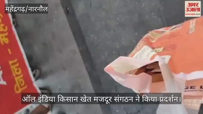 महेंद्रगढ़: बाजरे की खरीद व खाद-बीज उपलब्ध कराने की मांग को लघु सचिवालय में प्रदर्शन