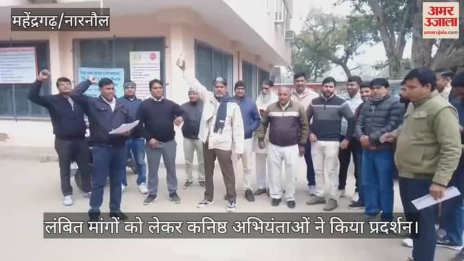 नारनौल: लंबित मांगों को लेकर कनिष्ठ अभियंताओं ने किया विरोध प्रदर्शन