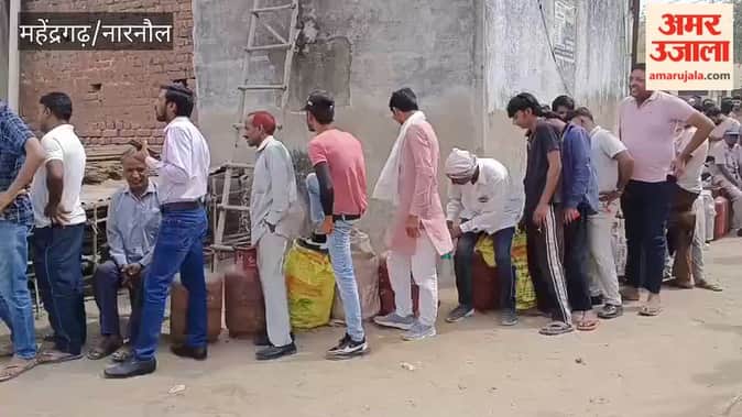 नारनौल: गैस सिलिंडर लेने के लिए एजेंसियों के बाहर लगी उपभोक्ताओं की लंबी कतार
