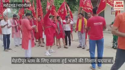 महेंद्रगढ़: मेहंदीपुर धाम के लिए रवाना हुई भक्तों की निशान पदयात्रा