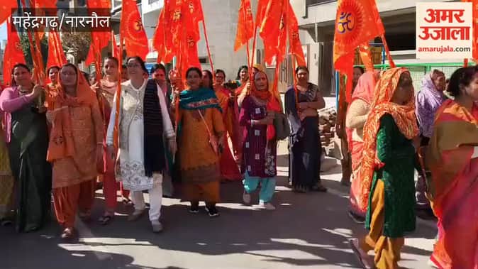 नारनौल: हिन्दू सम्मेलन को लेकर हुडा सेक्टर में निकाली गई निशान यात्रा