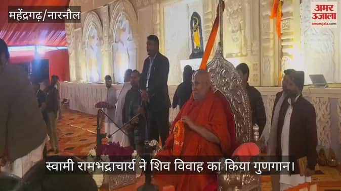 नारनौल: श्रीराम कथा के पहले दिन जगद्गुरु स्वामी रामभद्राचार्य ने शिव विवाह का किया गुणगान