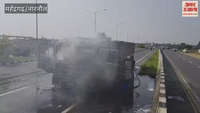 नारनौल में एनएच-148बी हाइवे पर ट्रक में लगी भीषण आग, वायरिंग फॉल्ट से हुआ हादसा