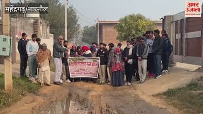 नारनौल: जैलाफ से चिंडालिया रास्ता पक्का करने की मांग को लेकर ग्रामीणों ने किया प्रदर्शन