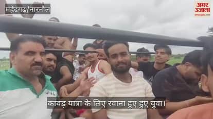 महेंद्रगढ़: नांगल कालिया से चौथी डाक कांवड़ लेने के लिए रवाना हुई युवाओं की टोली