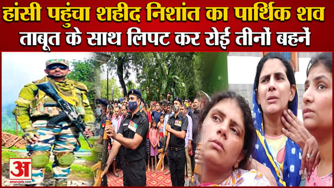 हांसी पहुंचा शहीद निशांत का पार्थिक शव,ताबूत के साथ लिपट कर रोईं तीनों बहनें