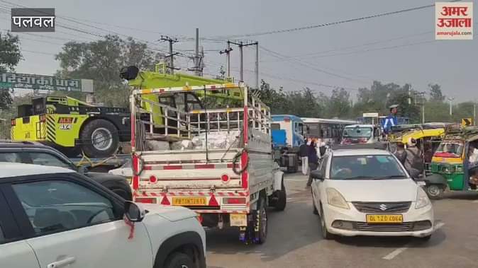 पलवल में सनातन एकता पदयात्रा: पृथला में जाम, गदपुरी टोल प्लाजा के बाद आगे जाने वाली लेन बंद