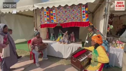 पंचकूला के सेक्टर 5 में लगे स्वदेशी मेला में पेशकारी देने पहुंचा कठपुतली ग्रुप