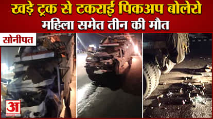 सोनीपत:भीषण सड़क हादसा,टोल के पास खड़े ट्रक से टकराई पिकअप बोलेरो, हादसे में महिला समेत तीन की मौत