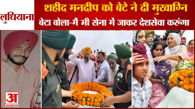 लुधियाना:शहीद मनदीप को बेटे ने दी मुखाग्नि,बेटा बोला-मैं भी सेना में जाकर देशसेवा करूंगा