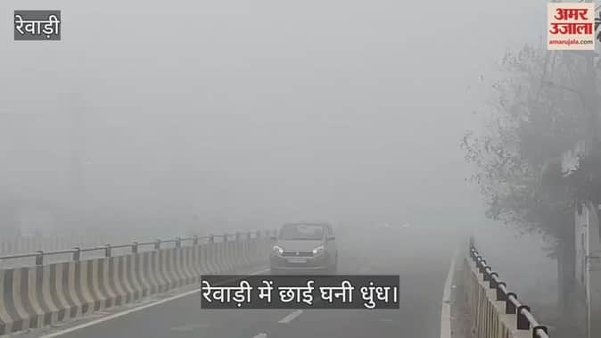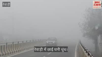 रेवाड़ी में छाई घनी धुंध, वाहनों की रफ्तार पर लगी ब्रेक