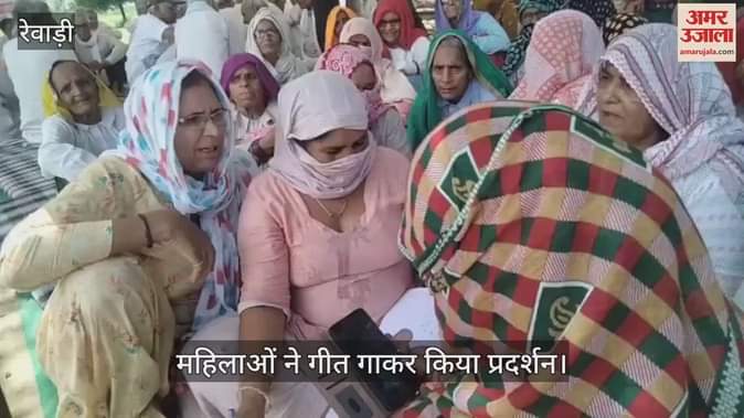 रेवाड़ी: रामगढ़-भगवानपुर में धरनारत महिलाओं ने केंद्रीय मंत्री की वादाखिलाफी पर सुनाए गीत