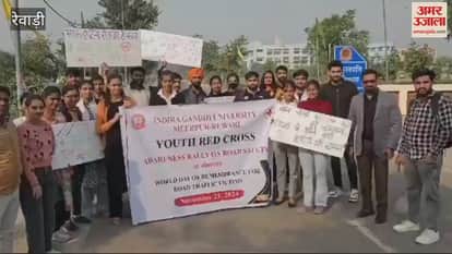 VIDEO : रेवाड़ी में यूथ रेडक्रॉस इकाई ने निकाली रोड सुरक्षा जागरूकता रैली, वाहन चालकों को किया जागरूक