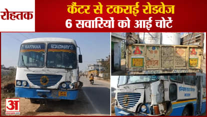 रोहतक में सड़क हादसा,कैंटर से टकराई रोडवेज,6 सवारियों को आई चोटें